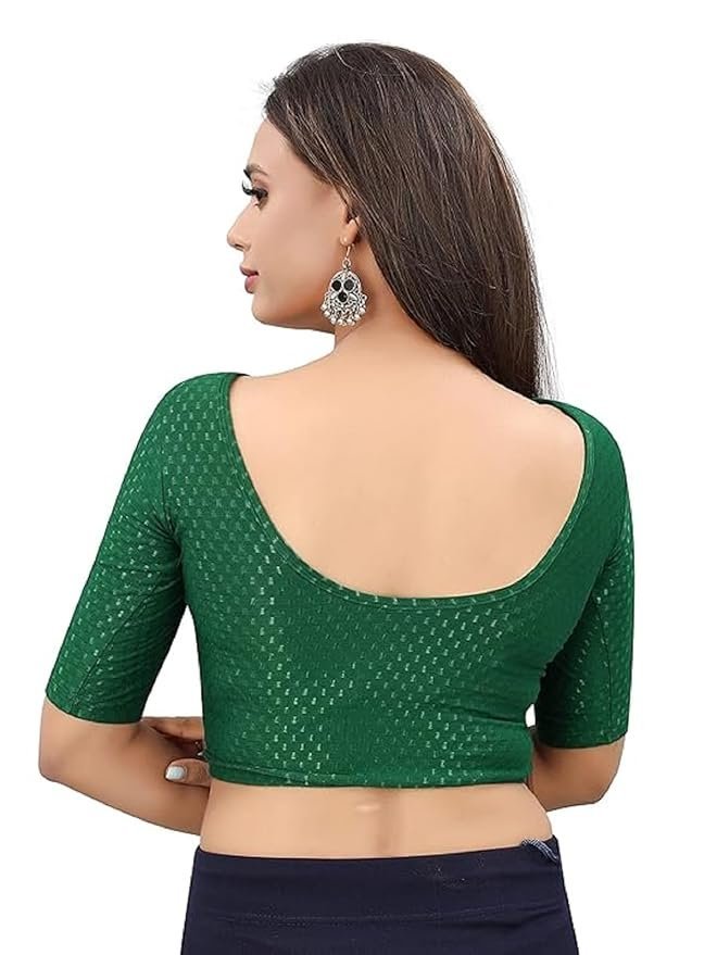 Round Neck Dobby Cotton Lycra Stretchable Elbow Half Sleeve Readymade Saree Blouse for Women Stylish